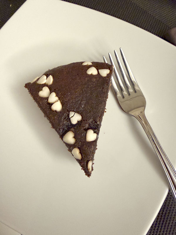 Auf dem Kuchen waren kleine Zuckerherzen, und natürlich musste ich sofort ein Foto machen, bevor ich ihn gegessen habe. Solche Herzen kann man ja schließlich nicht einfach übersehen.