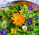 | Zutaten: Kopfsalat oder gemischte Blattsalate eine Handvoll Kapuzinerkresseblätter, in feine Streifen geschnitten eine Sammlung verschiedener Blüten, z.B. Boretsch, Kapuzinerkresse, Gänseblümchen, Ringelblumen, Hornveilchen, Fenchel, Dill, Schnittlauch Für die Vinaigrette: 4 EL Olivenöl 1 EL Aceto balsamico 1 EL Weißweinessig 1 EL Himbeeressig 1 TL Dijon-Senf 1 kleine Zwiebel, fein gehackt 1 kleine Knoblauchzehe, fein gehackt ein paar Spritzer Zitronensaft Salz, Pfeffer, evtl. 1 Prise Zucker |
