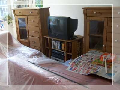 Wir müssen schon bekloppt sein, dass wir bei diesen Temperaturen unsere Wohnung streichen. Aber das Wetter kann man sich ja nicht aussuchen.